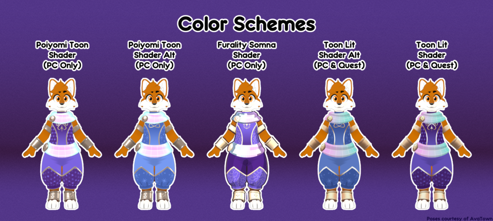 - This asset uses Poiyomi Shaders! Make sure you have the latest version.